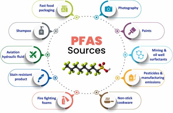 PFAS گروهی از ترکیبات پایدار و مقاوم شیمیایی هستند که بهدلیل خواص منحصر به فرد آبگریزی و چربیگریزی، بهصورت گسترده در صنایع مختلف از جمله تولید مواد ضدلکه، فومهای خاموشکننده آتش و فرآیندهای صنعتی مورد استفاده قرار میگیرند. این ترکیبات بهدلیل پایداری بالا در محیط، در منابع آبی مختلف از جمله چشمهها، آبهای زیرزمینی، پسآب صنعتی و حتی منابع آب شرب یافت میشوند.